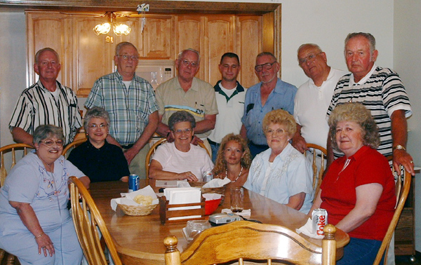 Seated From Left: Nancy Rabenstein Backscheider, Barbara Fritz Backscheider, Mary Neumann Backscheider, Kim Devine, Patricia Backscheider Jasper, Anna Cornell Backscheider. Standing From Left: Paul Backscheider, Joseph Backscheider,Charles Backscheider, Eric Backscheider, Frank Backscheider, Donald Jasper, John Backscheider. |