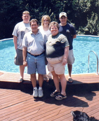 Front: Colleen Backscheider, Lazer, Megan Backscheider. Back: Kim Perkins Backscheider, Barry Backscheider | Front: Thomas Backscheider, Mary Christine Scheonfeld Backscheider. Back: Scott, Julie and Kurt Backscheider. Bottom Right: Samantha Jo |