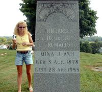 Here we found the best grave site of all. With the help of Katie and Jack Wellman (pictured below), we found our direct Janson line. FINALLY!! And not only did we find them, but there were 4 generations in one plot! Here also was a huge monument that had weathered the test of time well. Tell me....do you think Kim is happy?